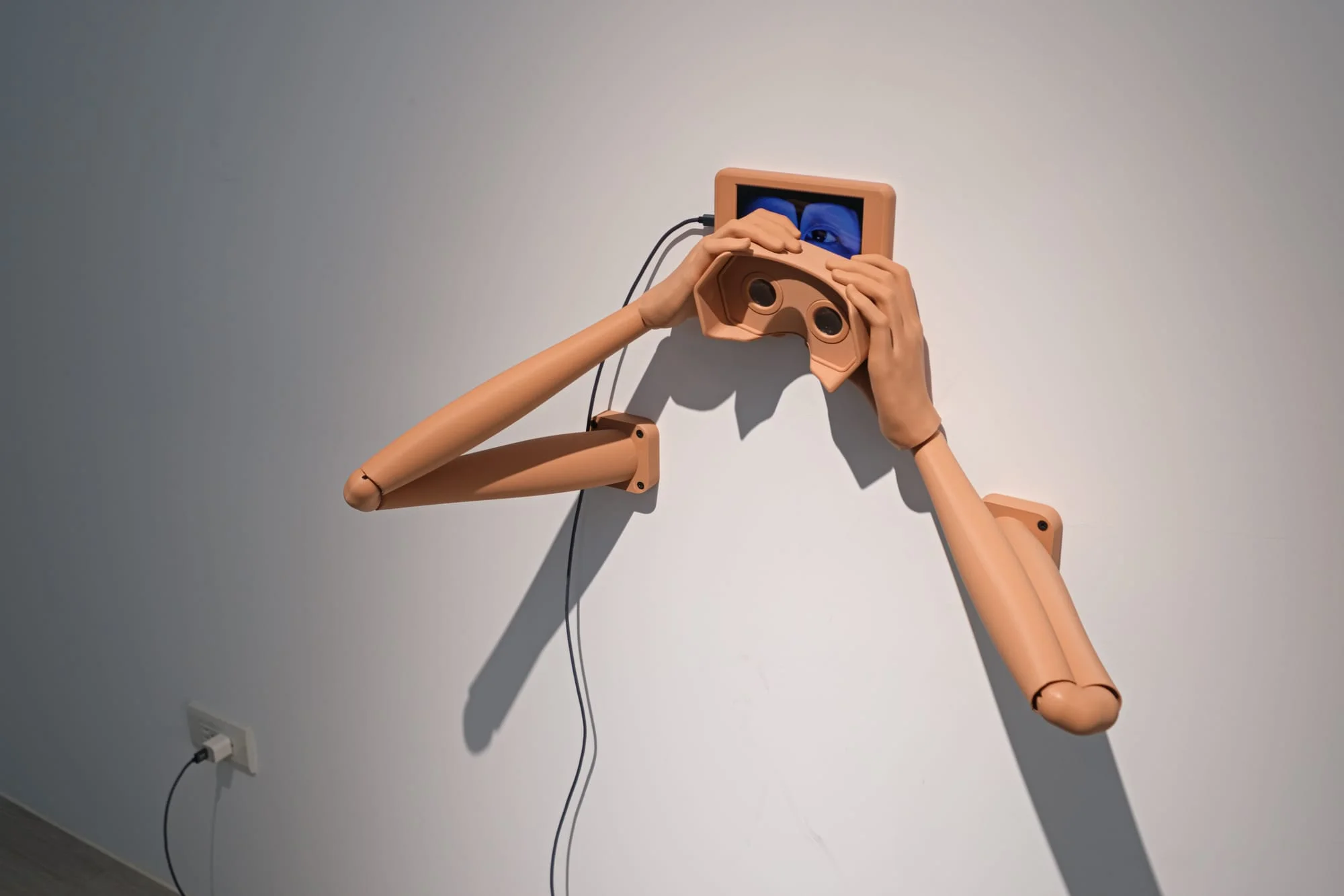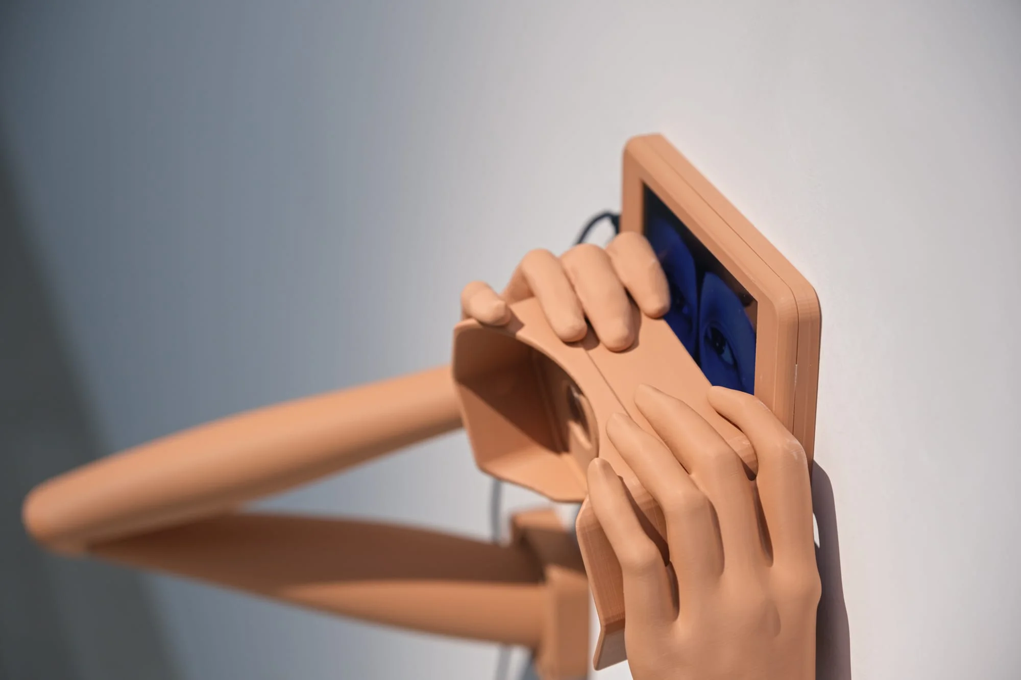 video, mobile phone, 3D printed interactive arms / 35(H)x70x25cm / 2023