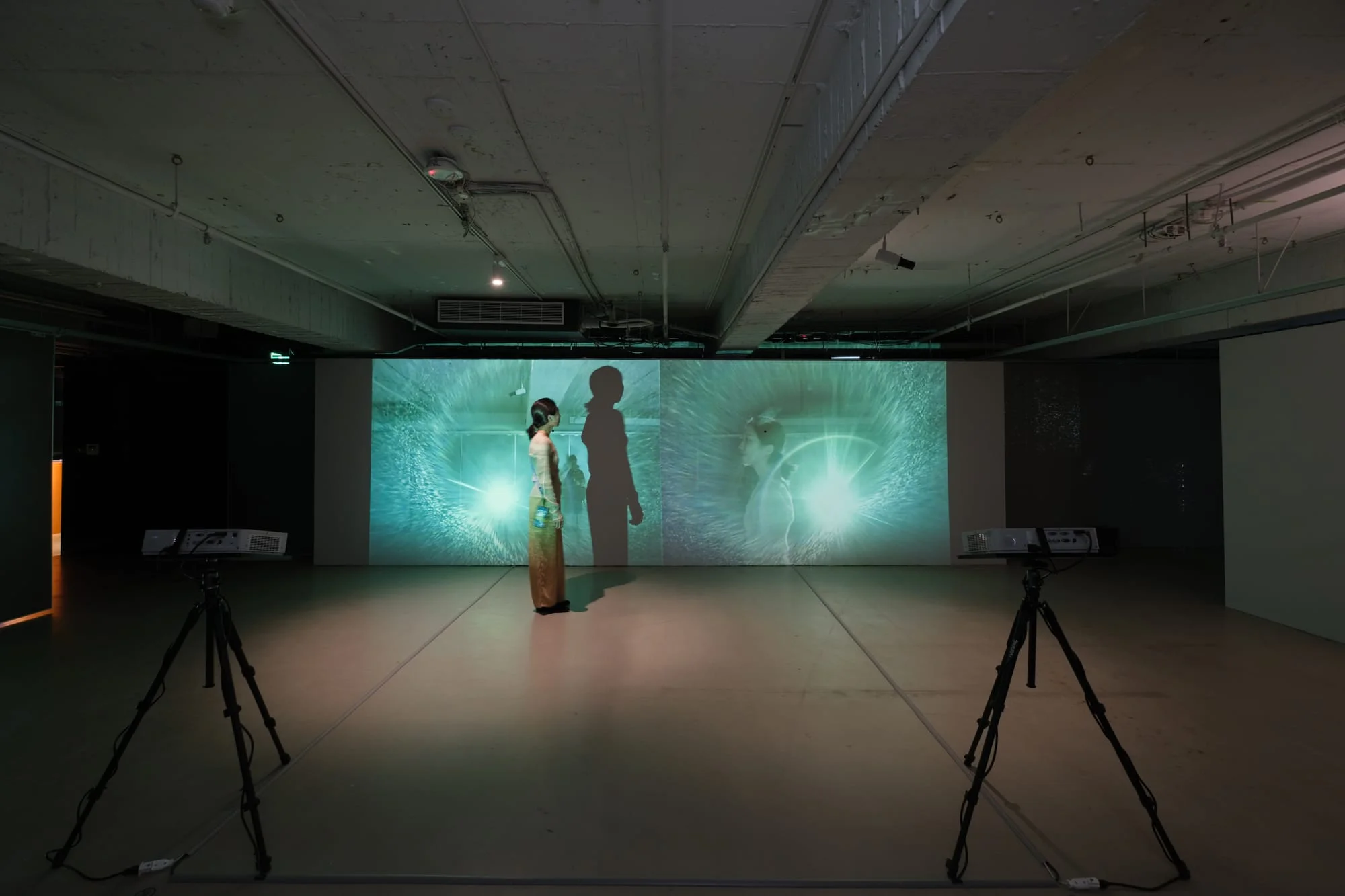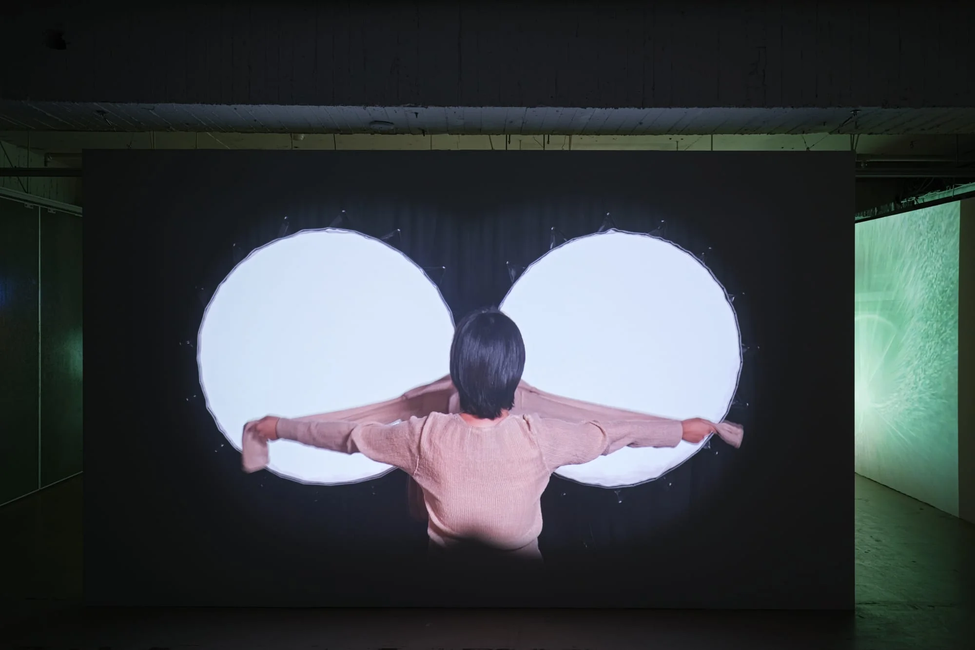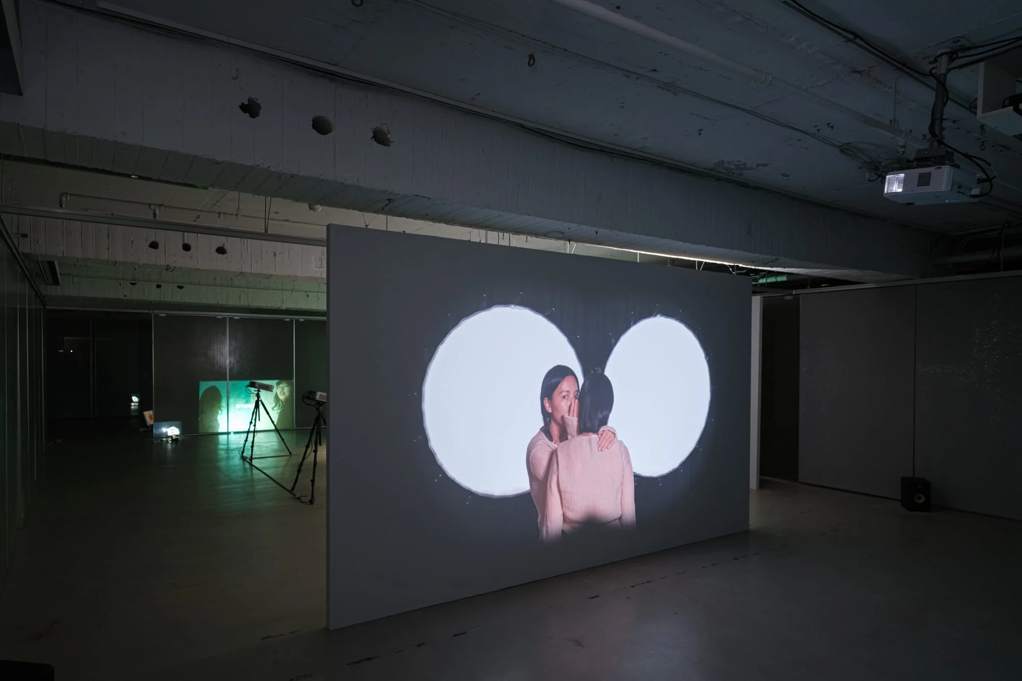 The term “double-channel” originally describes a plural state. Starts from the visual mechanism, this exhibition further embodies its dual characteristics and two-sided nature, by the interaction between bodies and video technology.